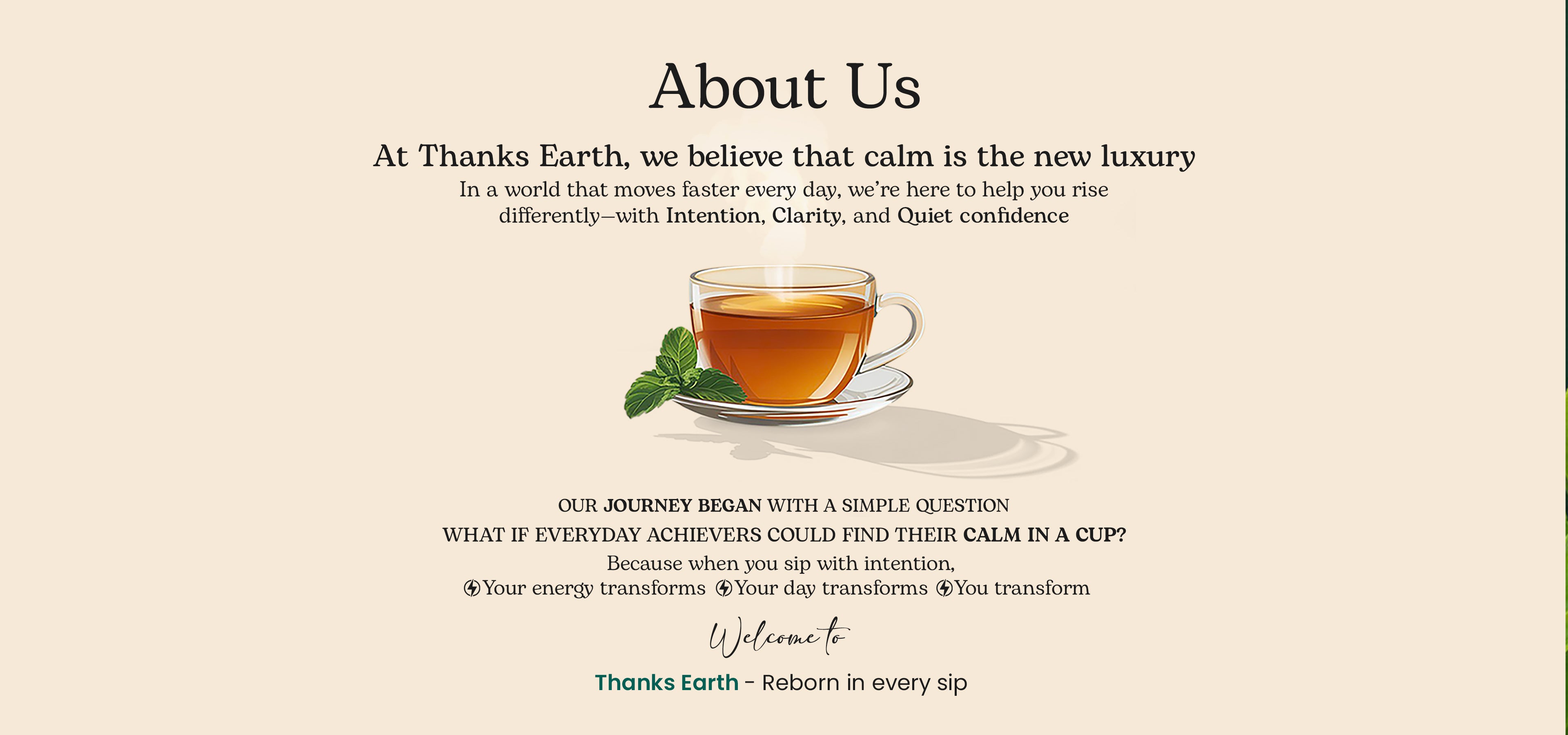 Welcome to Thanks Earth, where we believe in the power of nature to heal, nourish, and rejuvenate. Our journey began with a simple vision: to create a collection of herbal teas that not only delight the senses but also promote holistic well-being. Inspired by the ancient wisdom of herbal medicine and the rich biodiversity of our planet, we set out to craft teas that are pure, natural, and sustainably sourced.