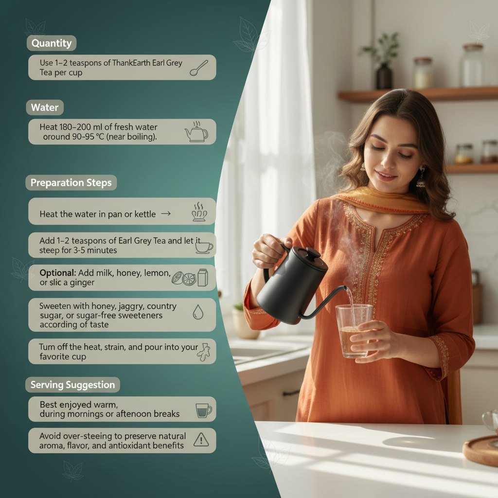 Quantity: Use 1–2 teaspoons of ThanksEarth Earl Grey Tea per cup