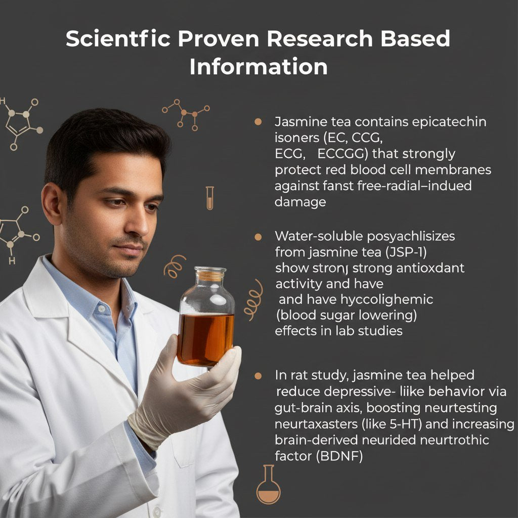 - Jasmine tea contains epicatechin isomers (EC, ECG, EGC, EGCG) that strongly protect red blood cell membranes against free-radical‑induced damage
