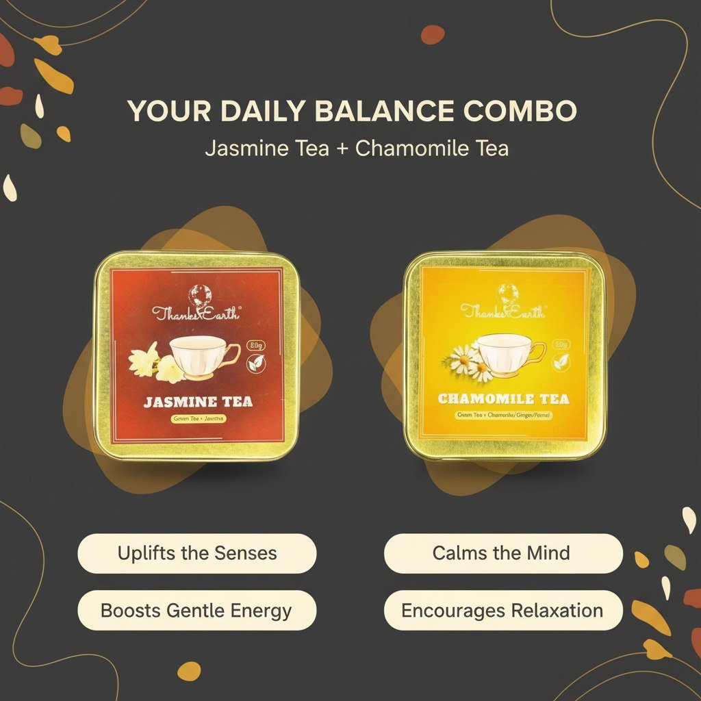 ThanksEarth Jasmine Tea combines the gentle floral fragrance of jasmine blossoms with a light green or white tea base to create a refreshing, calming experience. Each sip supports mental clarity, eases stress, and promotes natural energy without overwhelming stimulation. Rich in antioxidants, this tea helps combat oxidative stress, supports digestion, and encourages overall wellness. Perfect for mornings, afternoons, or a peaceful evening ritual, Jasmine Tea is your daily companion for calm focus, light energy, and a serene, uplifting tea moment
