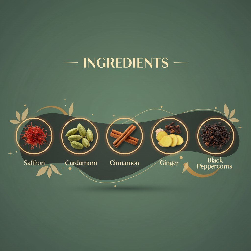 - Aromatic blend of green tea, saffron, cinnamon, and cardamom for a soothing experience