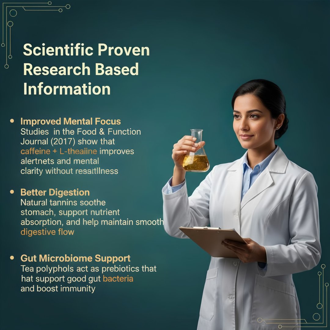 3. Improved Mental Focus Studies in Food & Function Journal (2017) show that the combination of caffeine and L-theanine in tea enhances alertness and mental clarity without causing restlessness