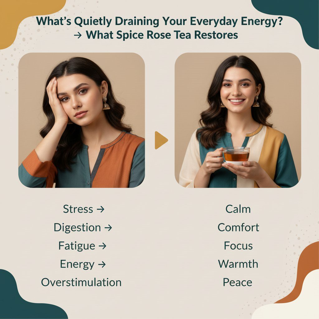 - Cardamom, a spice in Spice Rose Tea, helps lower inflammatory biomarkers such as IL-6, TNF-α, and CRP, supporting digestion and overall wellness