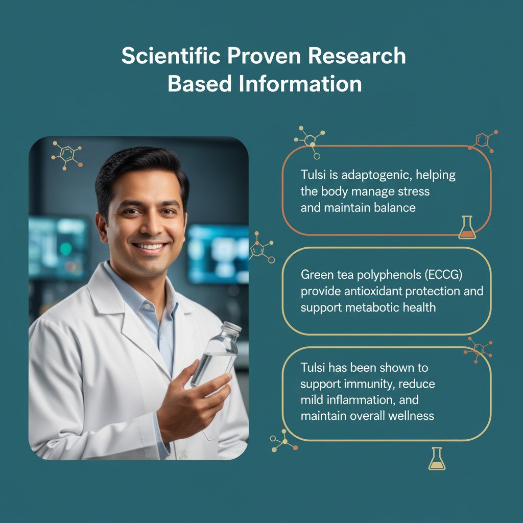 - Rich in Antioxidants: Combines the antioxidant properties of green tea and Tulsi to help combat free radicals and promote overall health.