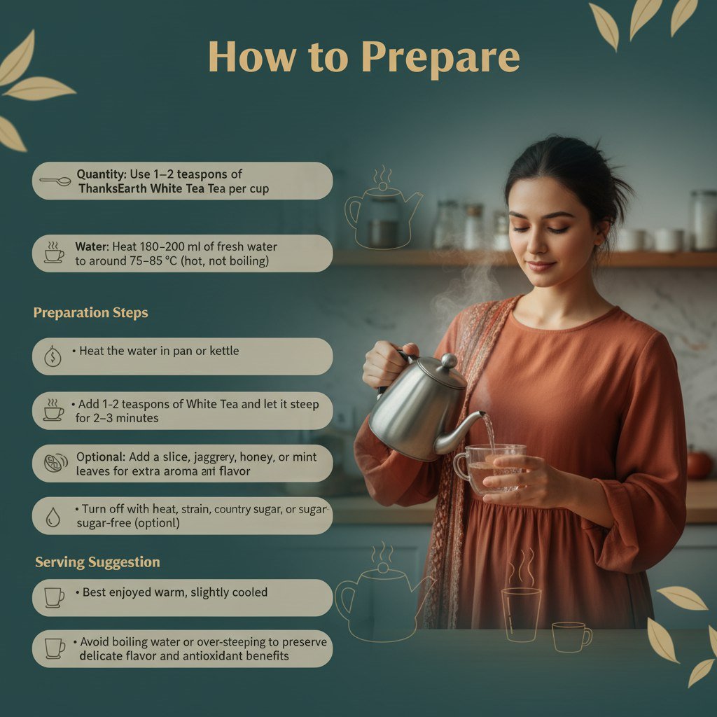 Quantity: Use 1–2 teaspoons of ThanksEarth White Tea per cup